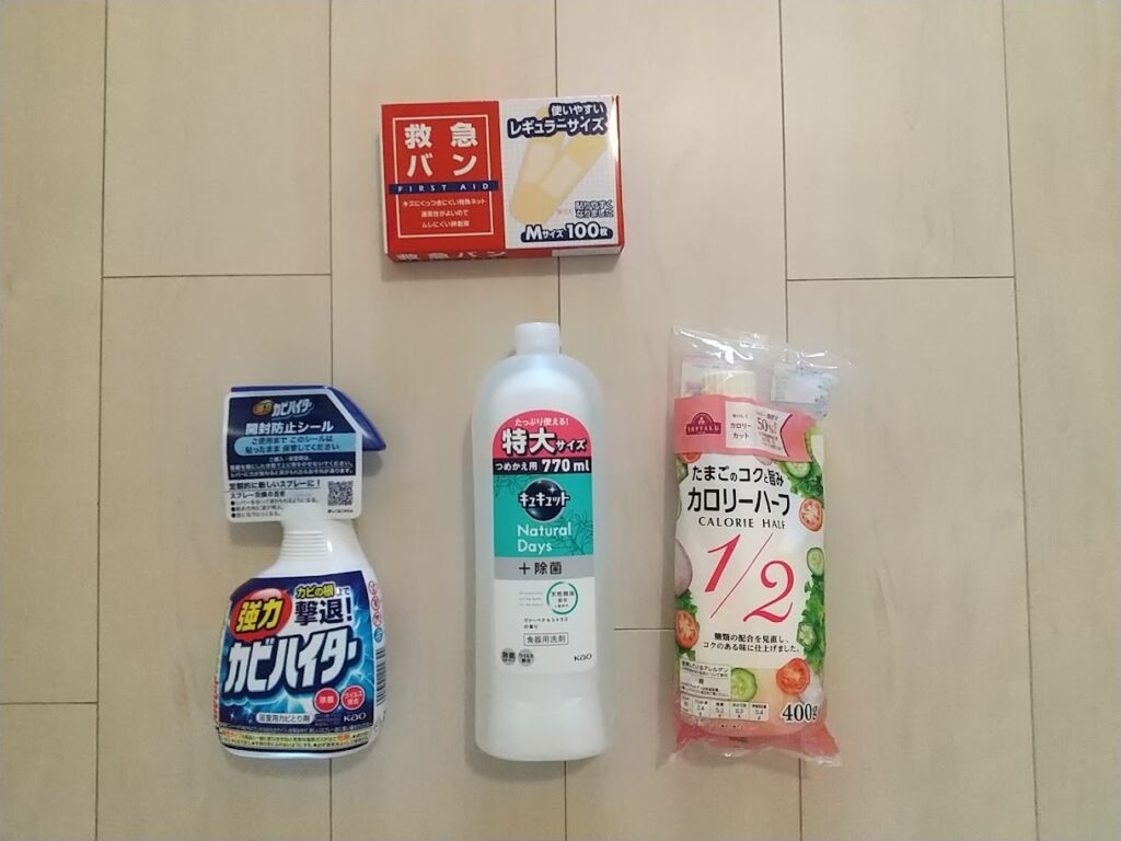 ウェル活に行ってきました 4回目 ウエル活 X Facebook はてブ LINE Pinterest コピー 2023.06.232025.09.28 今月久しぶりにウェル活に、行ってまいりました😊 購入した商品はこちら~♪ 絆創膏、カビハイター、食器用洗剤、マヨネーズ、計4点でした! ポイント支払いなので、実質0円です😊!