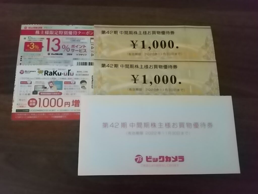 2023年5月に届いていた、ビックカメラ(3048)の株主優待券を使ってきました。