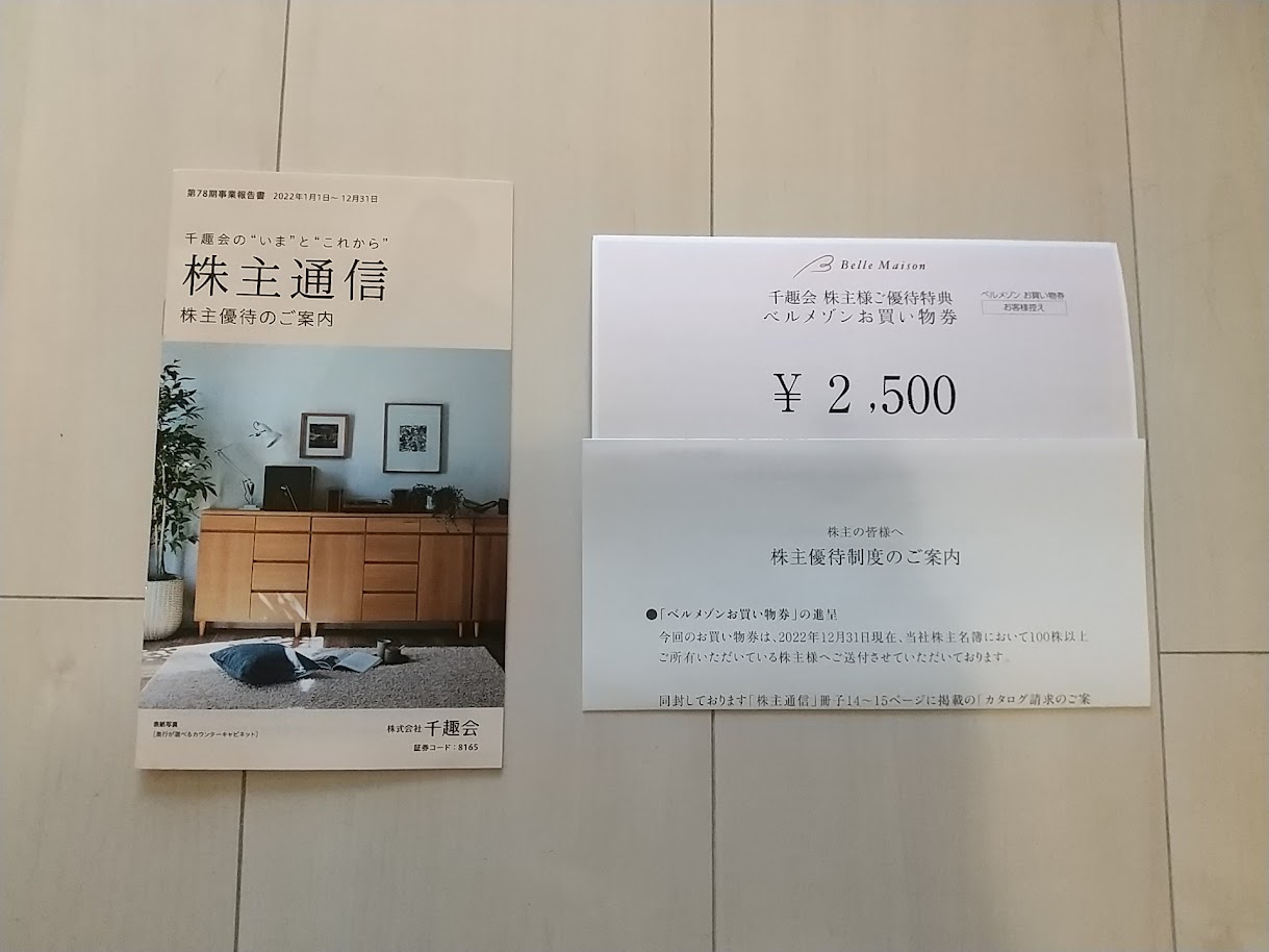 2025年9月、千趣会から2名義分・合計2,000円分の株主優待券が届きました🎁